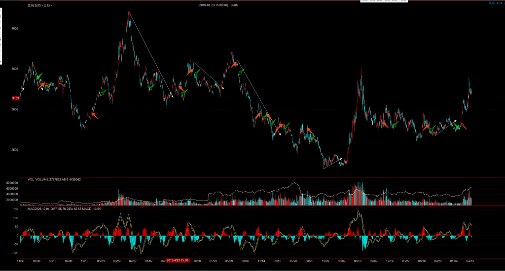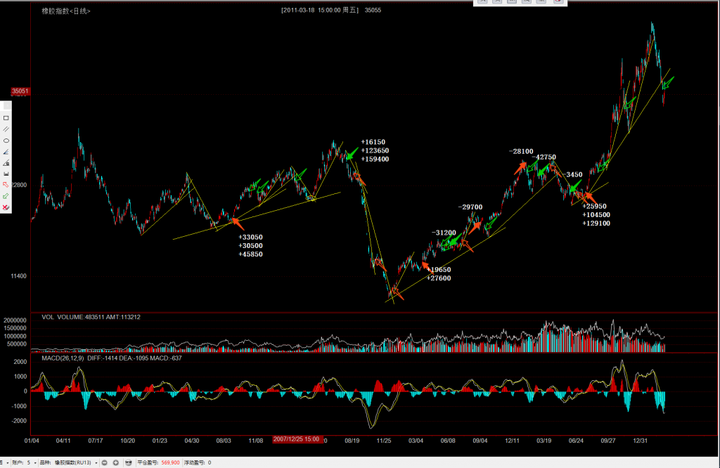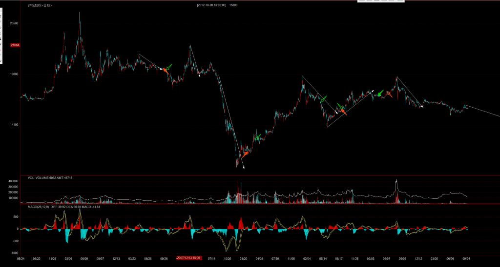 整体数年是震荡走势,震荡中用起来效果也还不错。不知道是不是可以用趋势线来做震荡差价0成本?再结合《专业投机原理》中的三天法则?缺口法则?2B法则?