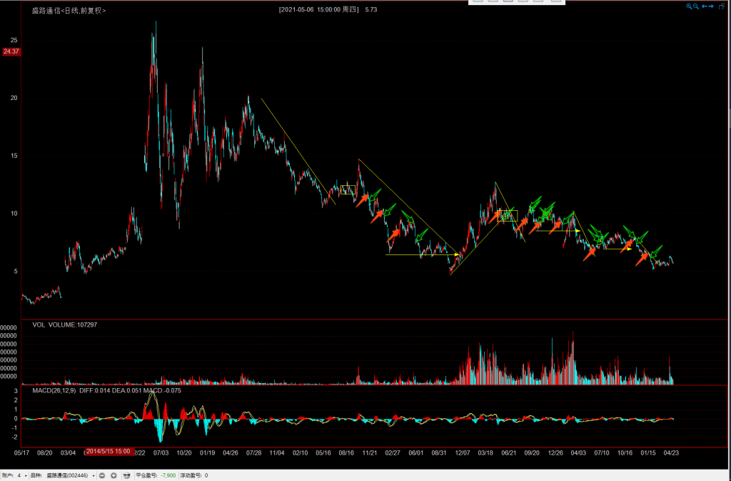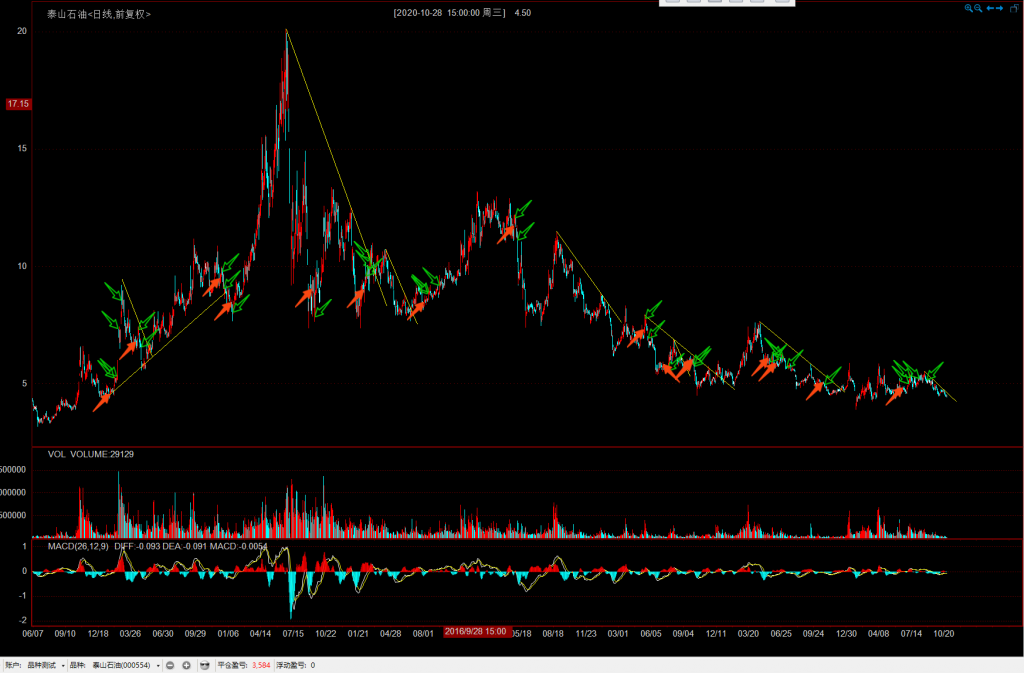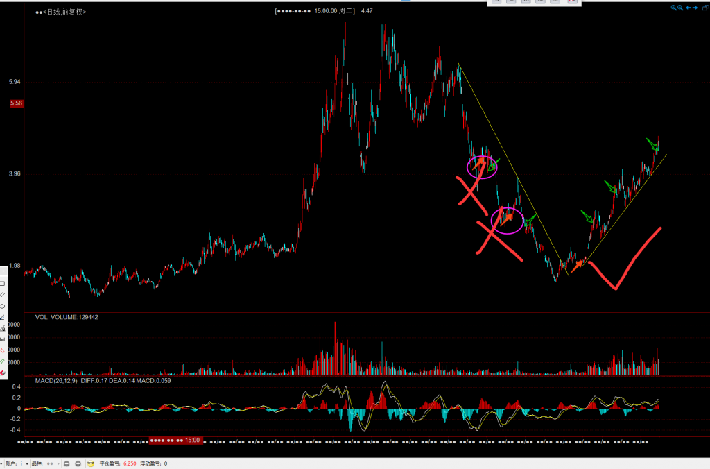 下跌趋势中,起码等趋势线破了,在上一侧再考虑入场