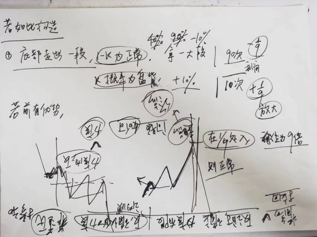 - 回忆起,早先简单缠交易时一笔笔画图,各级别严格笔,走势一步步精确演化的感觉。且很多被蛇咬太多的介入点或者直觉上不敢介入的买点,因为规则的存在,敢于入场。如大趋势的摸底,道氏V反的入场,符合规则,不管其他。