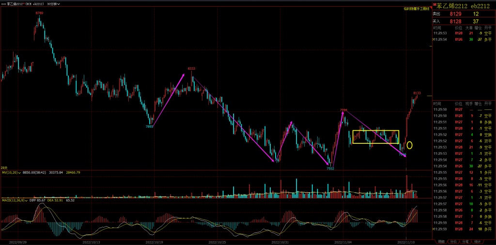 30F二买套,整体结构清晰,走势干脆利落。触发时的位置正好可以进,30F标准底分型。这个是当下5分钟错过了,没看。等回调没机会。