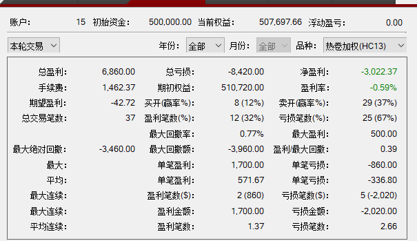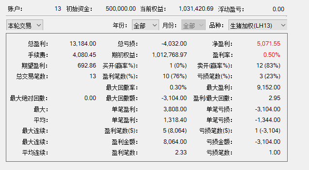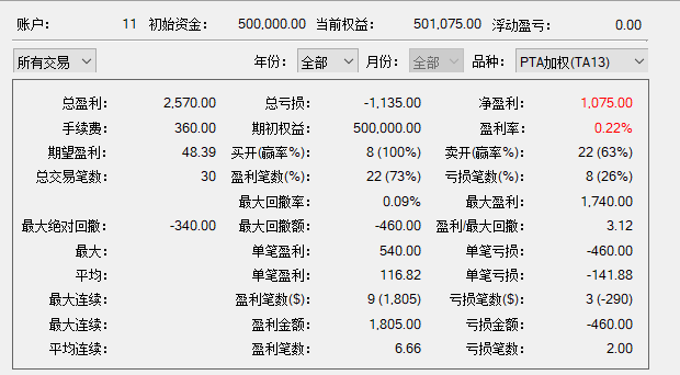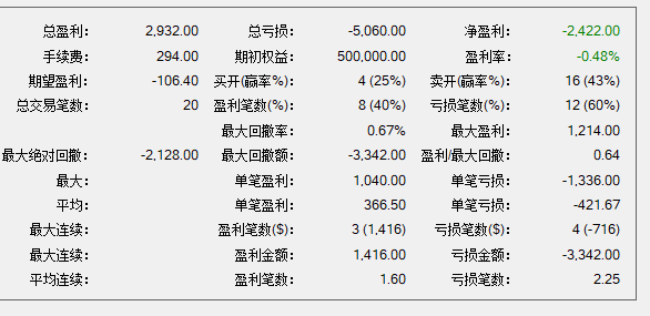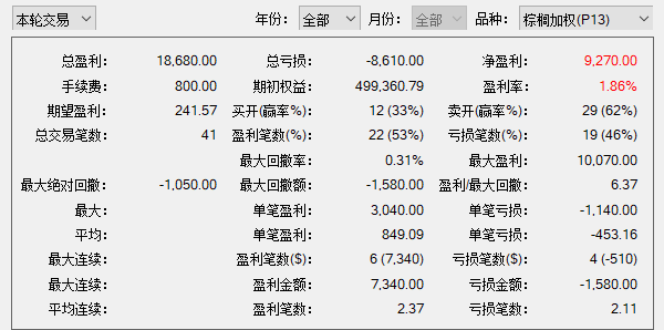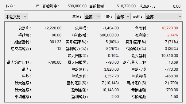 打平偏亏损,波动率和交易机会不太够。