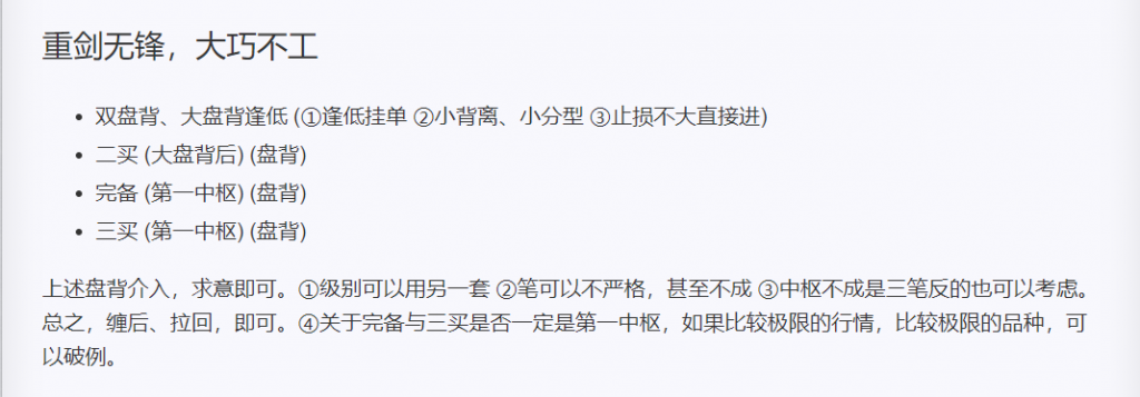 - 双盘背;大盘背逢低(①逢低挂单 ②小分型、小背离、小盘背 ③止损合适直接进)